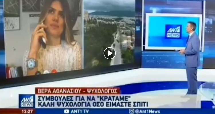 BLOG "Συμβουλές για να κρατάμε καλή ψυχολογία όσο είμαστε σπίτι" (Μεσημεριανό Δελτίο Ειδήσεων στον ΑΝΤ1. 29/03/2020) BLOG Share: Facebook Twitter Google+ Προηγούμενο Επόμενο